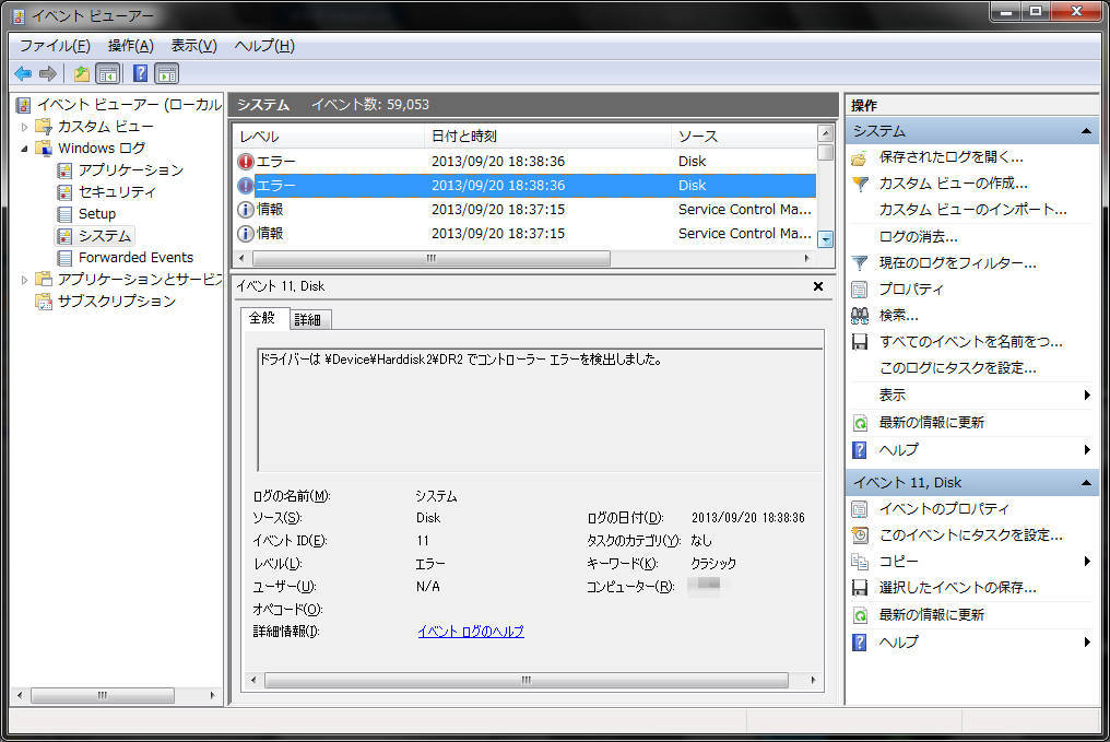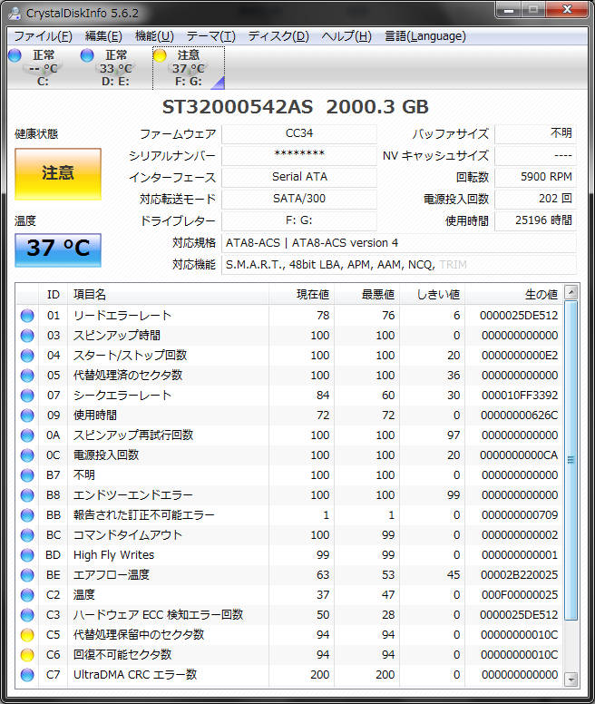 ちなみに別のハードディスクでSMARTの警告が出始めました(汗)