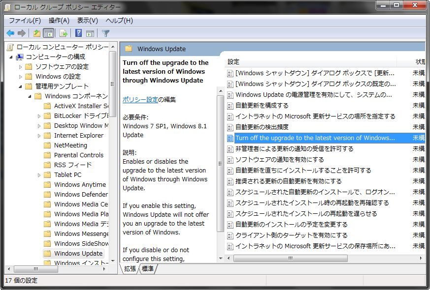例の田アイコンが表示されいてる環境でのアップグレードが一時的に抑止できるようですね。