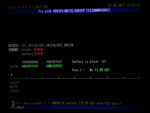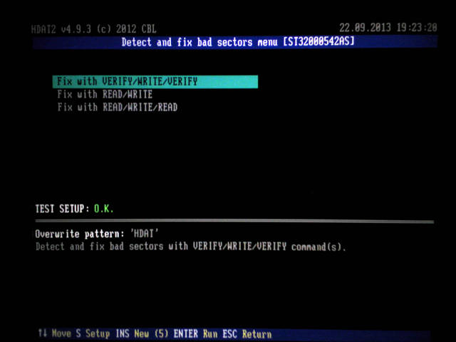 その後、「Fix with VERIFY/WRITE/VERIFY」を選択。(HDDの壊れ方?の度合いによって、この中のメニューから1つを選択します。今回は割愛)